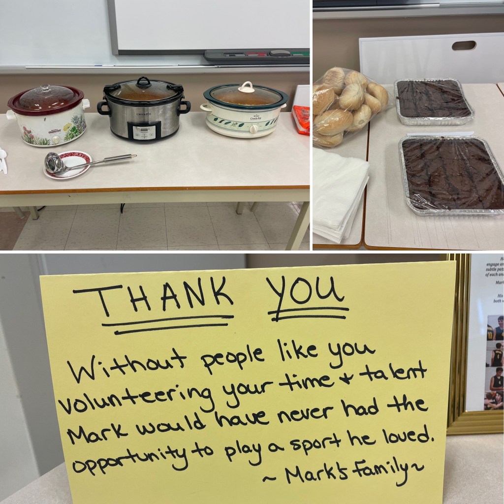 We set up a Coaches Lounge and provided free hot meals and snacks on both days. Mark played for various teams throughout his volleyball career and he had some amazing coaches who gave their time. We were always so thankful for them.